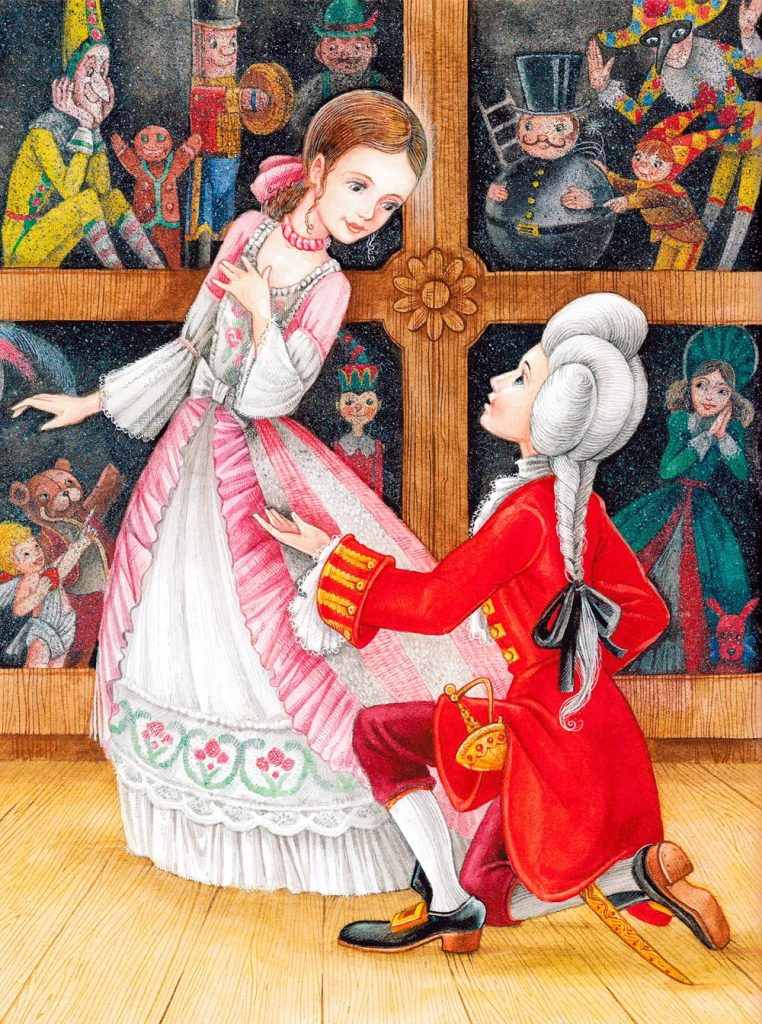 — Крёстный, ведь ты же всё знаешь! Скажи, что мой Щелкунчик — твой племянник, молодой господин Дроссельмейер из Нюрнберга, и что он подарил мне эти крошечные короны.