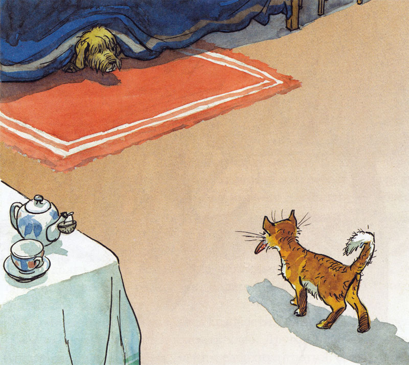 Вечером вернулся домой кот Васька. Он увидел Барбоса под кроватью и сразу понял, в чём дело.