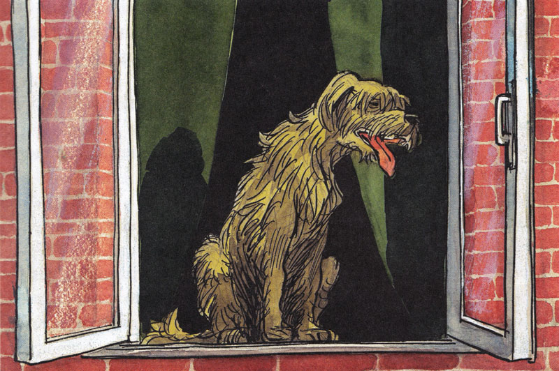 Однажды дедушка ушёл на работу, кот Васька убежал куда-то гулять, а Барбос дома остался. От нечего делать он залез на подоконник и стал смотреть в окно. Ему было скучно, вот он и зевал по сторонам.