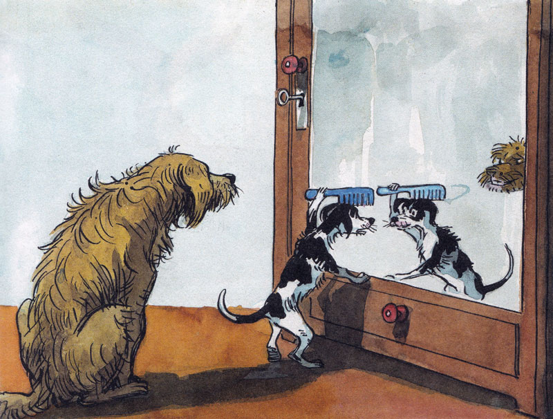 — Послушай, — закричал он, показывая на зеркало, — там собака какая-то!