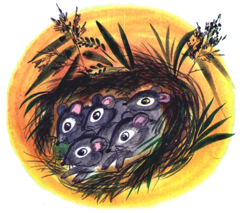 — Хи-хи! — ответили из гнезда. — Он думает, мы птицы. Хи-хи! Хи-хи! Какие ж мы птицы? Ты разве не видишь, мышата мы!